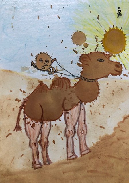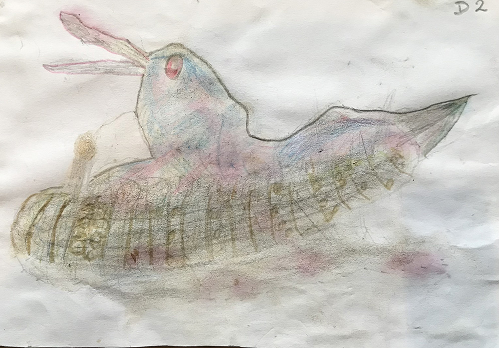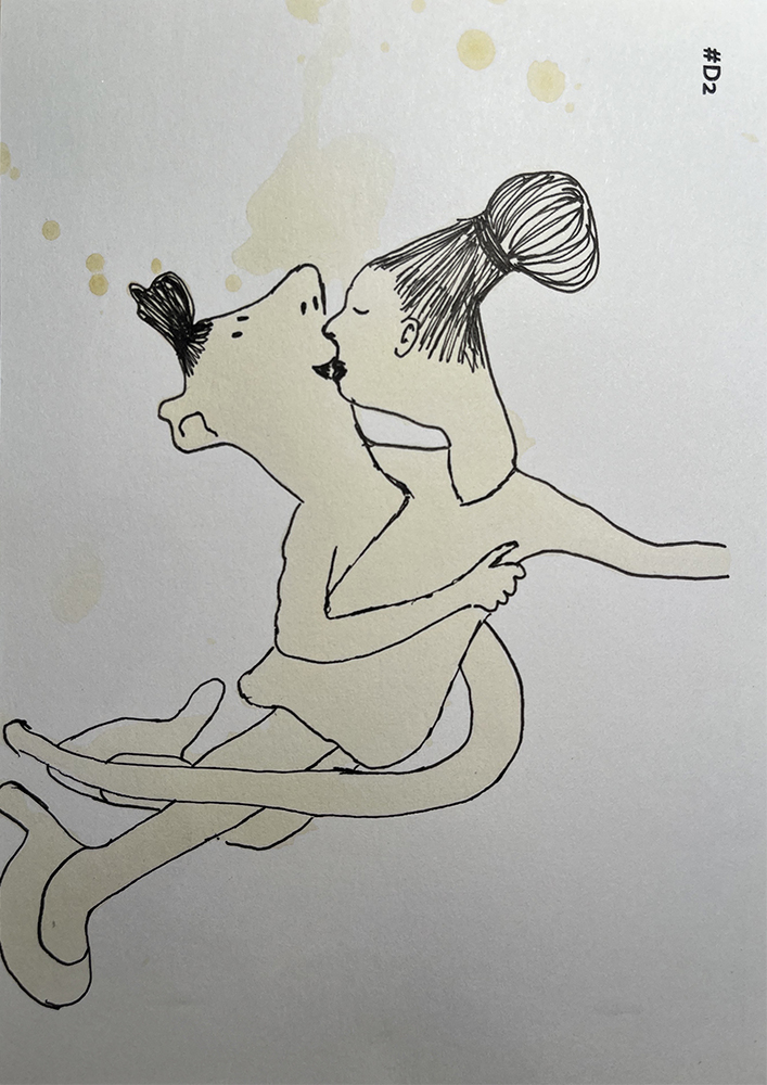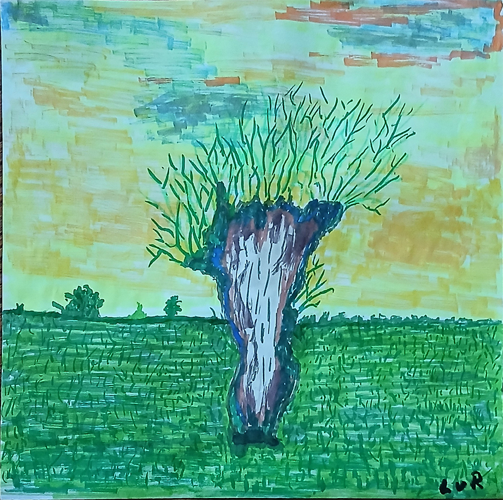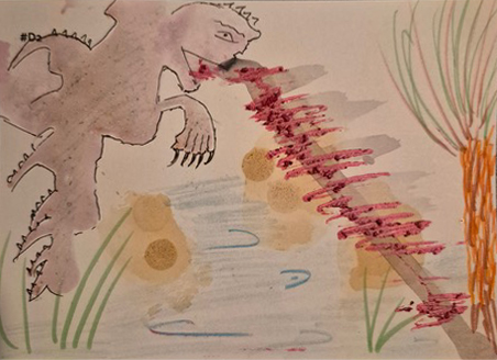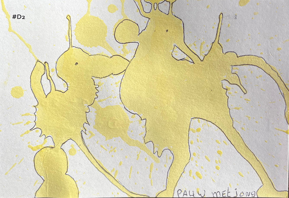 Met deze opdracht worden we uitgedaagd om vlekken te maken en deze te gebruiken als uitgangspunt voor de tekening. Met fantasie zie je hieronder hele leuke composities ontstaan.