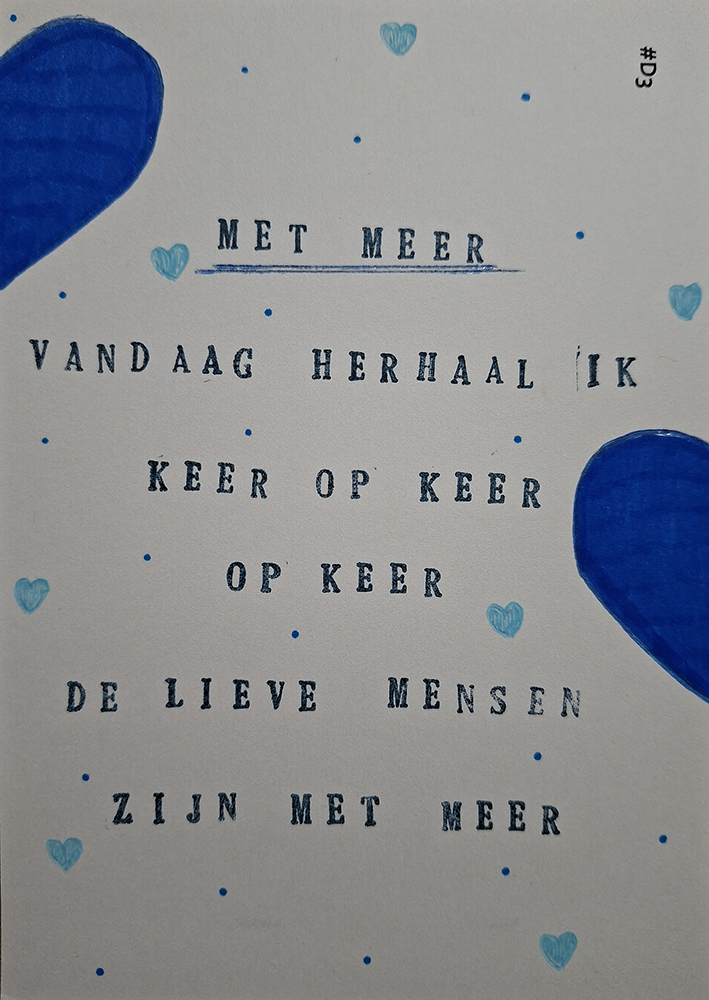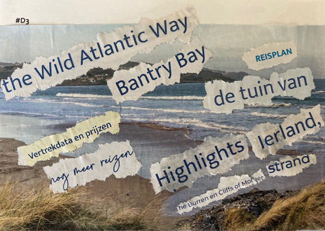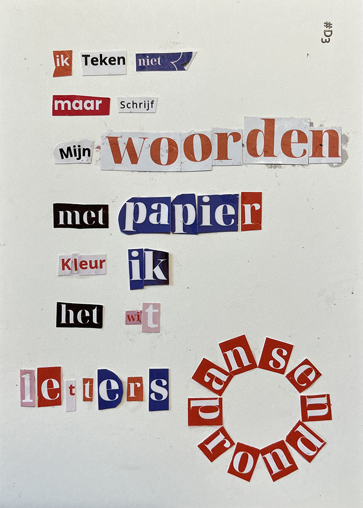 Een nieuwe opdracht, een nieuwe uitdaging door te spelen met woorden. Maak een gedicht of maak een collage van tekst uit een bestaande tekst. Natuurlijk kun je het naar eigen inzicht versieren en aanvullen.