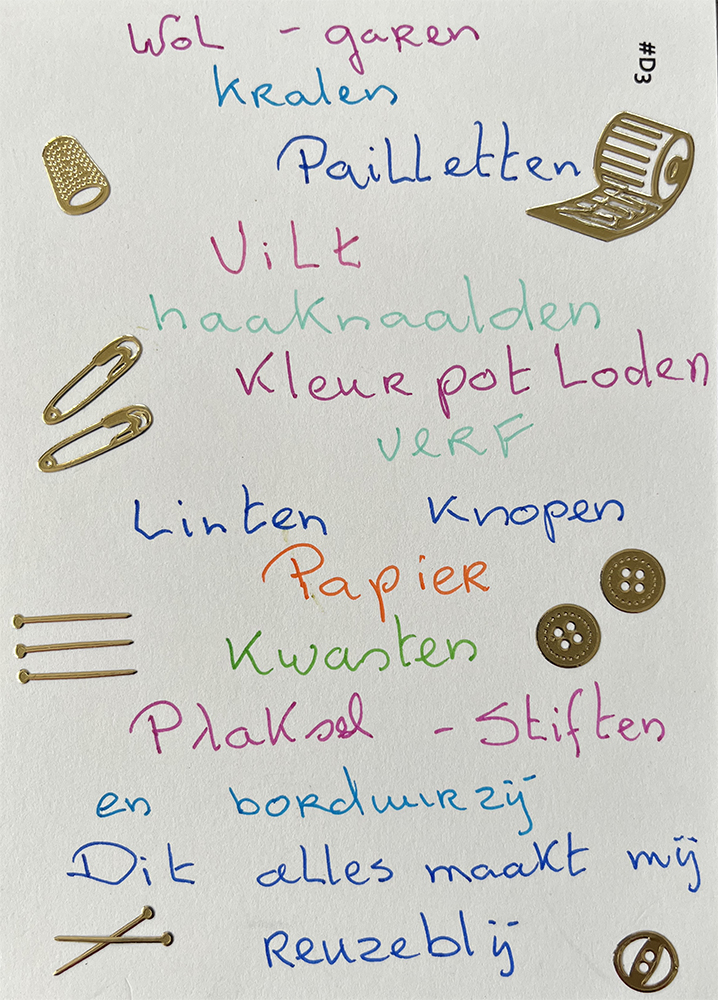 Alle opdrachten kunnen naar het creatieve inzicht van de deelnemer worden gemaakt. Dit kan met potlood, kwast, restmateriaal, stofjes, draad, enz. De mogelijkheden zijn legio en dit zien we ook terug in de ingezonden stukken, waar steeds erg veel aandacht aan besteed is. Het leuke van dit project is dat iedereen mee kan doen. Je hoeft daarvoor echt geen Rembrandt of Van Gogh te zijn.