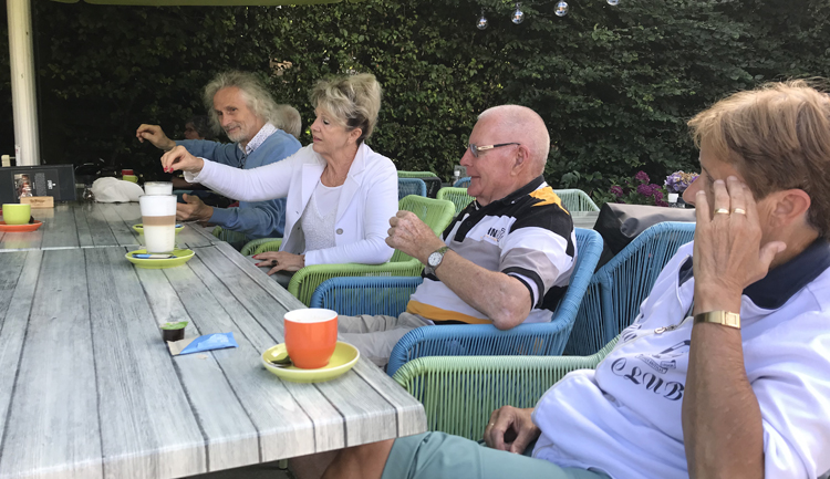 Om negen uur vertrek om via Haarsteeg, Bokhoven, Engelen, Empel, Rosmalen, Maliskamp in Berlicum terecht te komen voor de koffie. De eerste probleempjes deden zich voor in Rosmalen. Een stuk van de route, dat eigenlijk al klaar had moeten zijn, was dat niet. De bedoeling was om Rosmalen heen te rijden maar dat werd nu dwars door het centrum heen. In Berlicum was de eerste koffiestop. Ruim een half uur later dan gepland. Na de koffie snel weer op de fiets want er was ook een tijd afgesproken voor de lunch. Maar ja, gezellig kletsend onder het fietsen wordt er ook wel eens een afslag gemist en dan moet je weer terug. Vanuit Berlicum ging het over rustige paden naar Middelrode. Achter kasteel Heeswijk langs en zo naar Veghel. Bij Lia en Toon, het gast adres in Veghel, stond de koffie en thee al klaar. Ruim vijfenveertig kilometers stonden er toen op de teller dus het lunchpakket liet zich goed smaken. Een klein uurtje later kon er weer opgestapt worden voor de terugweg. Nu ging het over de Veghelse dijk richting Schijndel, St Michielsgestel naar Halder waar gestopt werd bij Landgoed Haanwijk voor een frisse dronk. Het weer was prima. Niet te warm en niet te veel wind en gelukkig geen regen. Na deze stop restte nog maar een route: via Vught langs het kanaal naar Drunen/Elshout. Naar huis dus. Rond vijf uur weer terug op vertrekpunt met negentig kilometers op de teller. Een mooie route met dank aan degenen die dit ieder jaar weer uitzoeken.