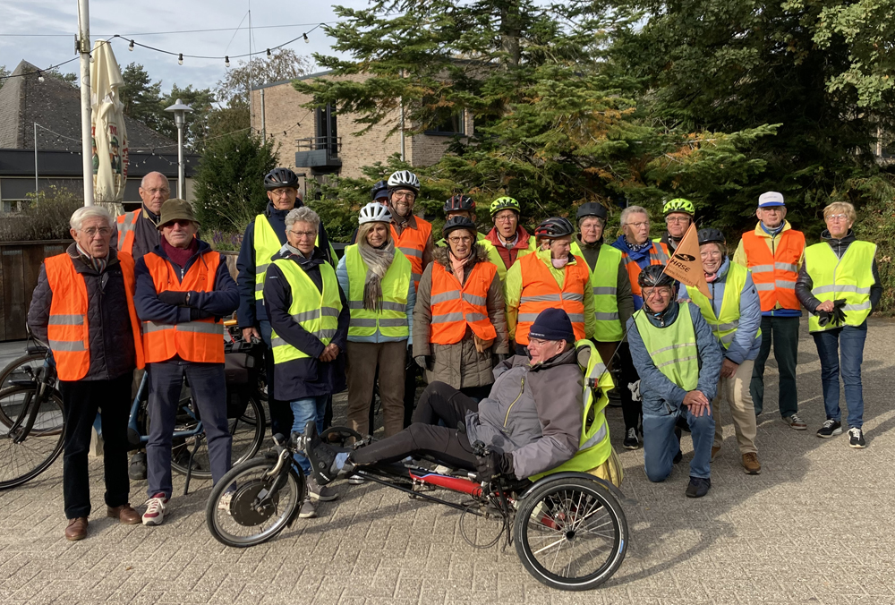 De laatste tocht werd woensdag 18 oktober gefietst met maar liefst 21 mensen. Het was een koude morgen dus menigeen had de winterjas en handschoenen aan. De laatste tocht van dit jaar, uitgezet door Tini van Weert en Ben van Son ging richting Waalwijk over het halvezolenpad om daarna verder te gaan over de snelfietsroute richting Kaatsheuvel. Niet dat er sneller door gefietst wordt maar in een rustig tempo werd de weg vervolgt door de Loonse en Drunense duinen. Bos en Duin werd voorbij gereden evenals de Rustende Jager maar bij de Guldenberg was het eindelijk tijd voor koffie. De warmte binnen werd door iedereen zeer gewaardeerd. Na de opwarming ging het verder door de duinen naar de Margrietweg om via de brug over het kanaal richting Drunen uit te komen op de Duinweg om van daaruit de weg naar Elshout te vervolgen. Met 38 km op de teller bij het eind/beginpunt.