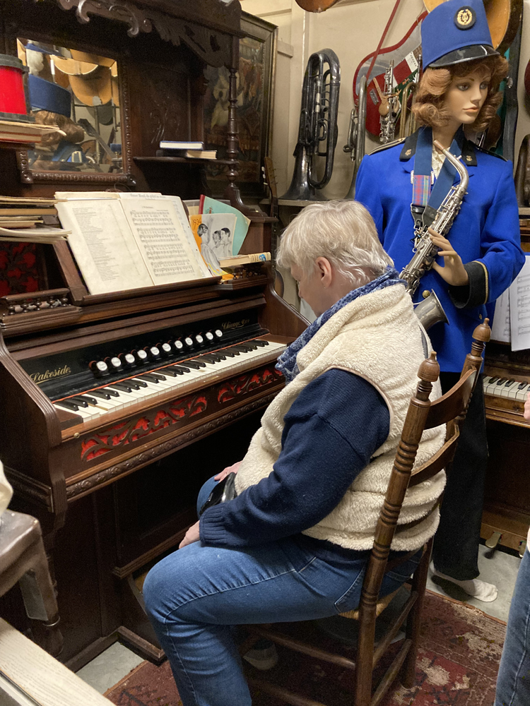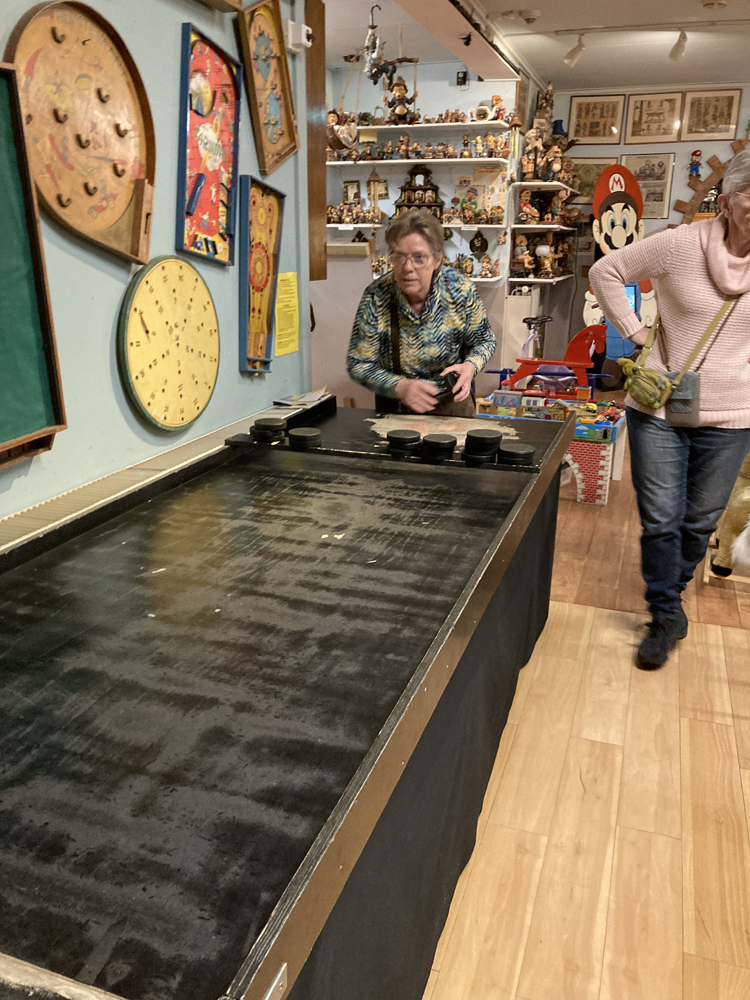 Zo’n 120 KBO mensen in een zaal en dan ook nog overwegend vrouwen, geeft behoorlijk gekakel. In Terschuur, bij het speelgoed en ambachtenmuseum was er eerst koffie met gebak en daar werd ook de groep in tweeën gedeeld. Elshout kwam in de groep die eerst het museum mocht bezichtigen. Het is niet moeilijk om je voor te stellen dat de dames veel plezier gehad hebben bij deze reis naar het verleden. Al hadden zij al snel ontdekt dat zij van de groep de gemiddelde leeftijd behoorlijk omlaag haalden. Elshout heeft nml een “jong”bestuur.