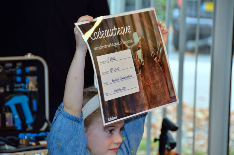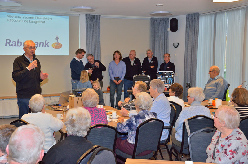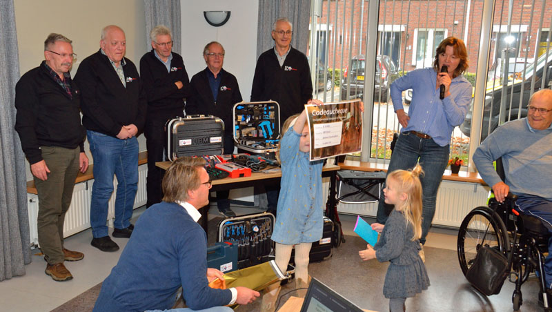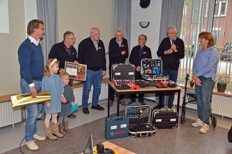 Dat er toch wel belangstelling was voor deze dienst was te zien aan het groot aantal personen die aanwezig waren. Alle stoelen waren bezet. Woonveste was ook aanwezig want ook zij zagen de voordelen van deze klusdienst. Kleine klusjes hoeven niet meer door een bedrijf uitgevoerd te worden. De cheque werd symbolisch overhandigd door de Rabobank en als dank voor de aanwezigheid waren er bloemen voor de dames van Rabobank en Woonveste.