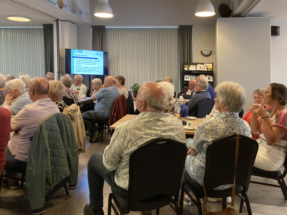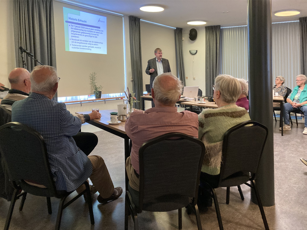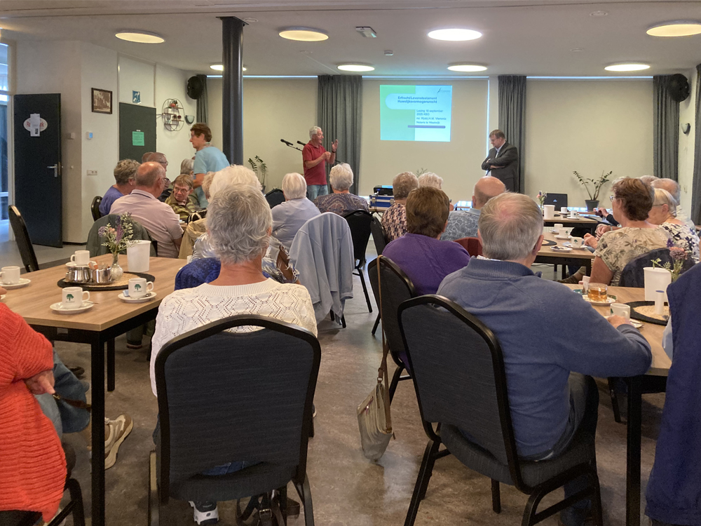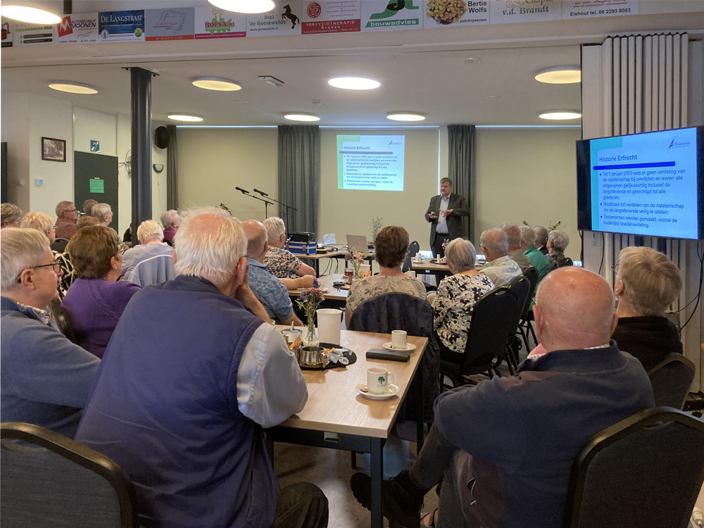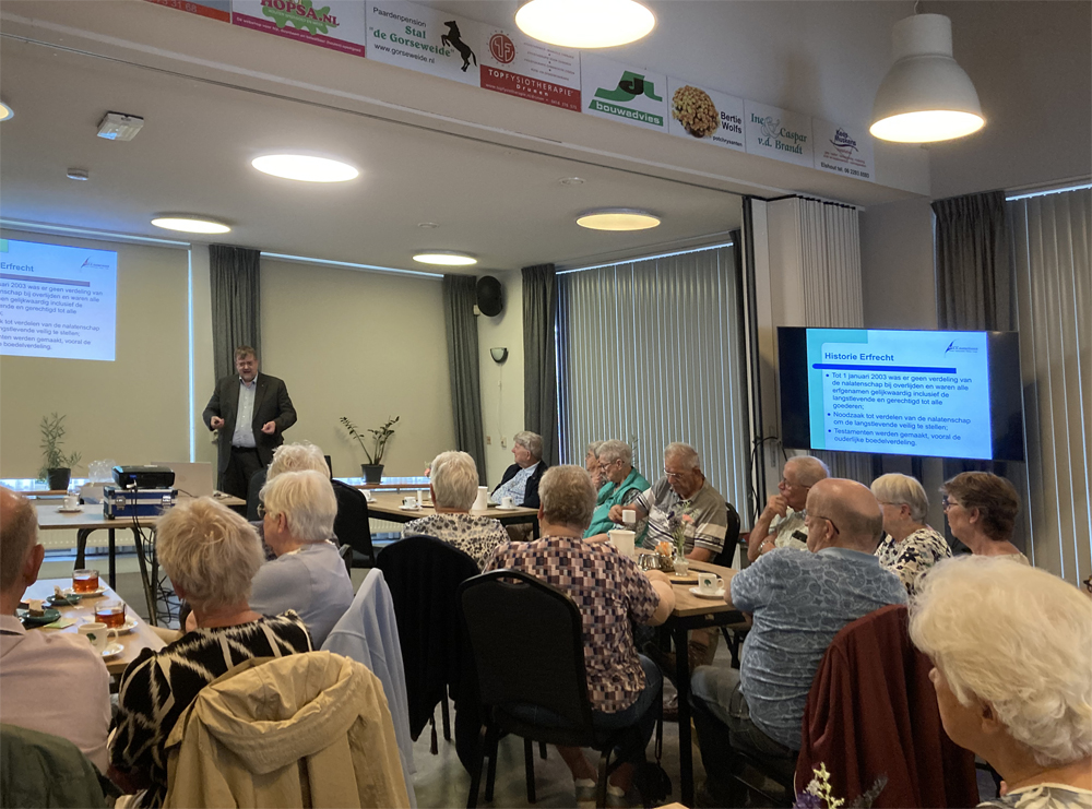 Op donderdag 18 september was Notaris de heer Vlemmix uit Waalwijk aanwezig om een lezing te verzorgen over het levenstestament. De opkomst was groot en er werd met belangstelling geluisterd. De heer Vlemmix heeft veel informatie verstrekt en uitleg gegeven over de mogelijkheden die er zijn. Het was een informatie bijeenkomst en iedereen ging weer een stuk wijzer naar huis.